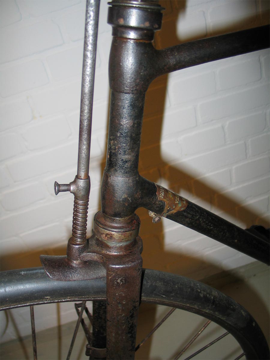 This could be an explanation why this bike has no serial number, radial (not tangent) spokes and a slightly different head than the bike in the catalogue.
